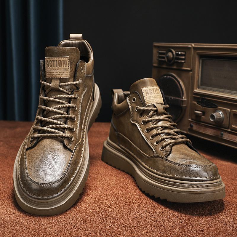 Модная мужская обувь весна и осень новая повседневная обувь на доске кожаные ботинки однотонные британские кожаные туфли противоскользящая мягкая подошва