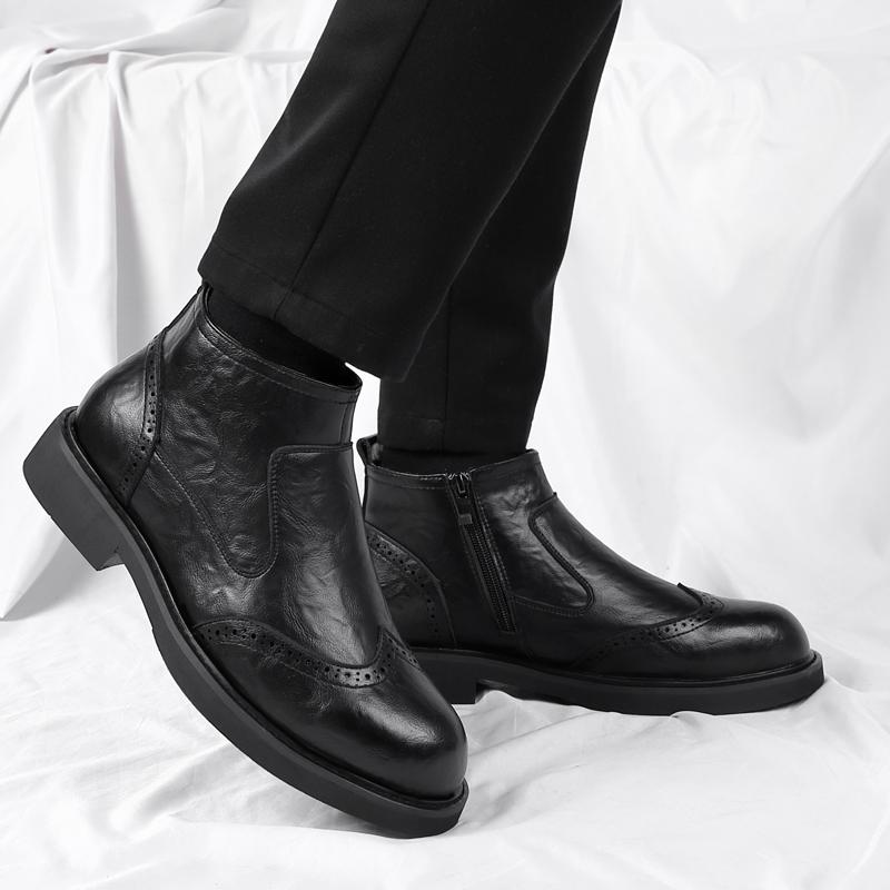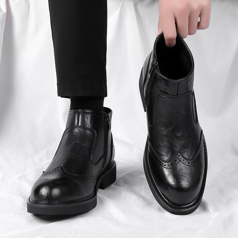 Модный бренд Модные кожаные ботинки Слипоны Ботильоны Высокий каблук Для мужчин Повседневные Платформа Челси Ботинки Мужские Свадебные туфли Зима