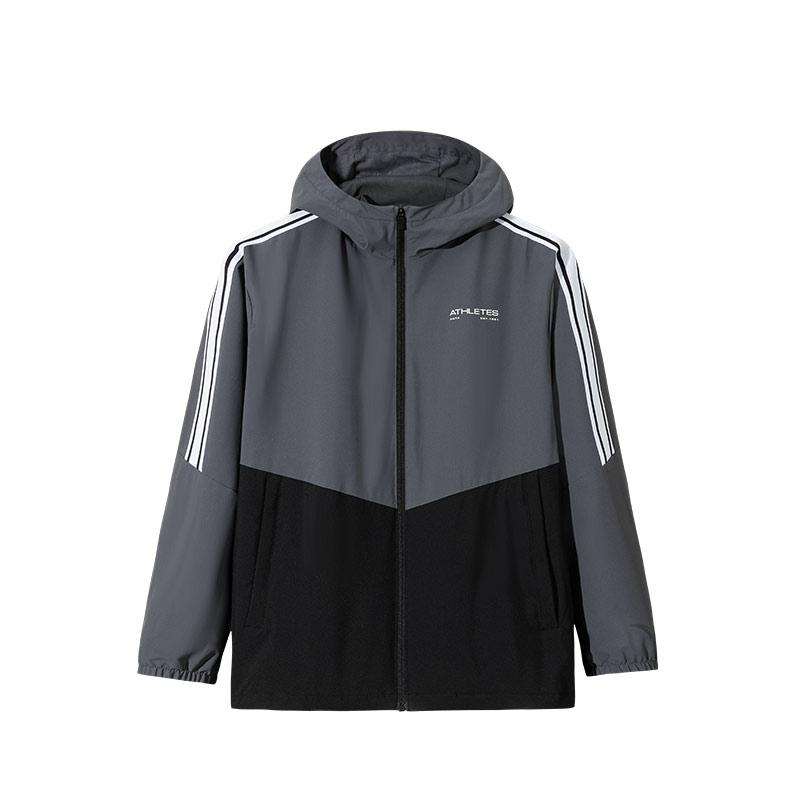 Anta Цветовой блок, худи на молнии, удобная, дышащая, универсальная куртка, мужская куртка, серая, черная, 152517616-1