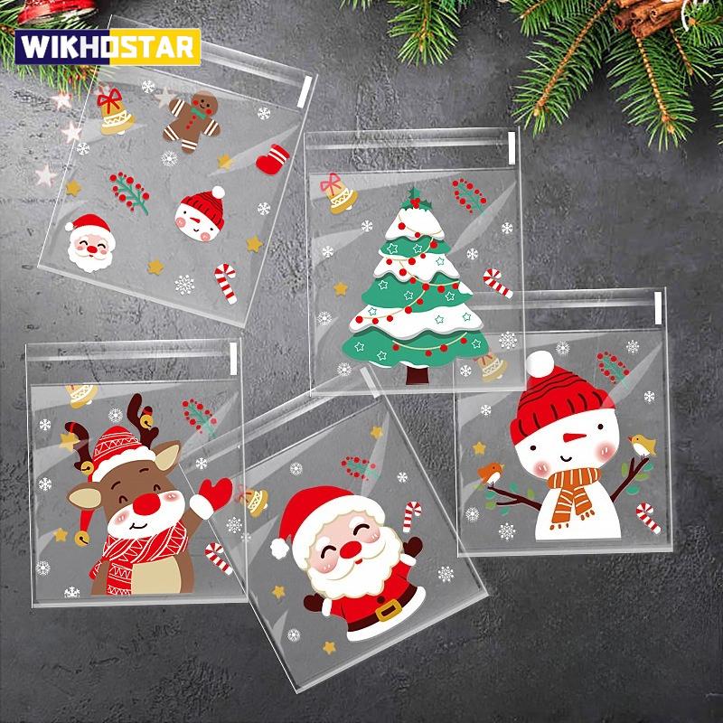 100 шт. 10X10 см Рождественские пакеты для угощений Санта Клаус Печенье Конфеты Пакет Самоклеящийся Подарочный пакет Домашние Рождественские украшения Детские подарки