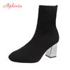 Модные Aphixta 2025 Новые модные ботильоны Женская обувь Эластичные ботильоны-носки На массивном высоком каблуке Растягивающиеся Сексуальные ботильоны Заостренный носок Плюс 41 43