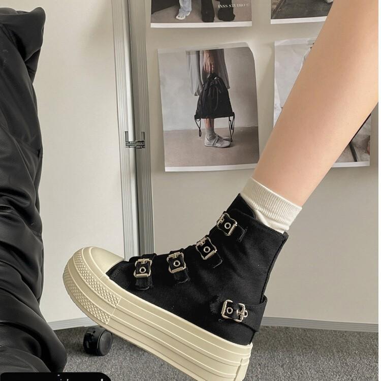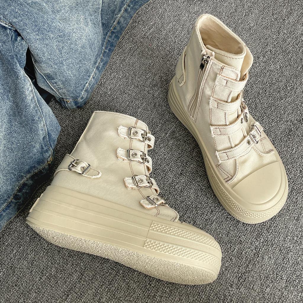 Модные ретро парусиновые короткие ботинки на толстой подошве с дизайном пряжки для женщин, удобные осенние ботильоны на массивном каблуке с нескользящей подошвой