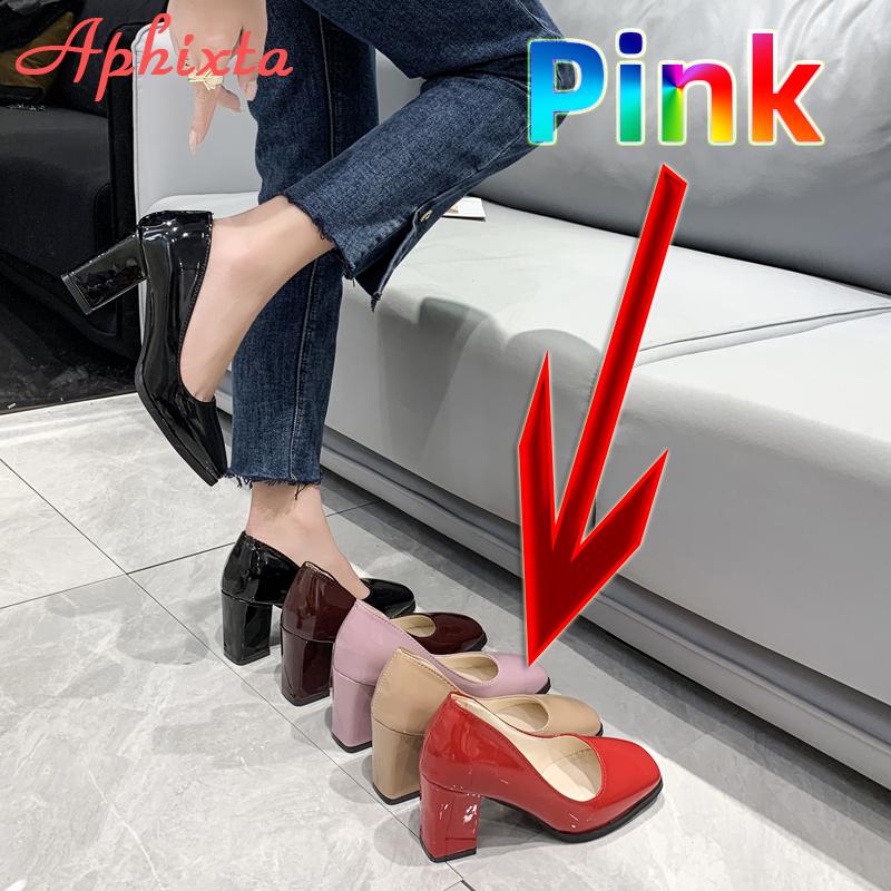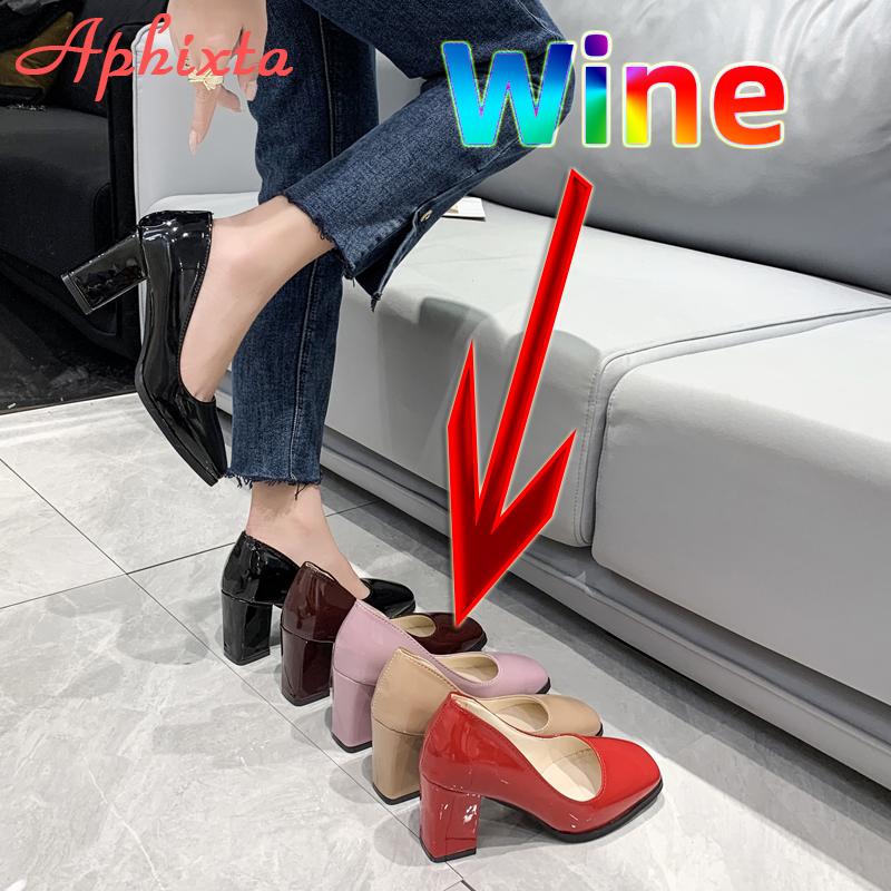 Модные туфли Aphixta 7,5 см квадратный носок лаковая кожа женские туфли-лодочки толстый каблук Sapato Feminino рабочие туфли для вечеринки супер большой плюс размер 50