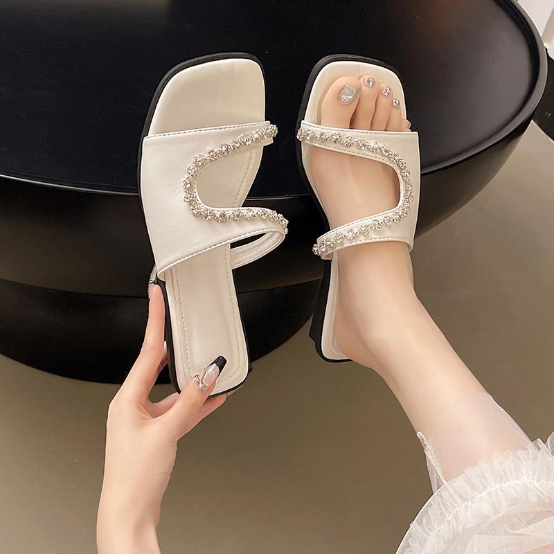 Fashion New Popular Slippers for Women Wearing Versatile Sequin Sandals with Thick Soles and Outdoor Rhinestone Flip Flops Zapatos Mujer