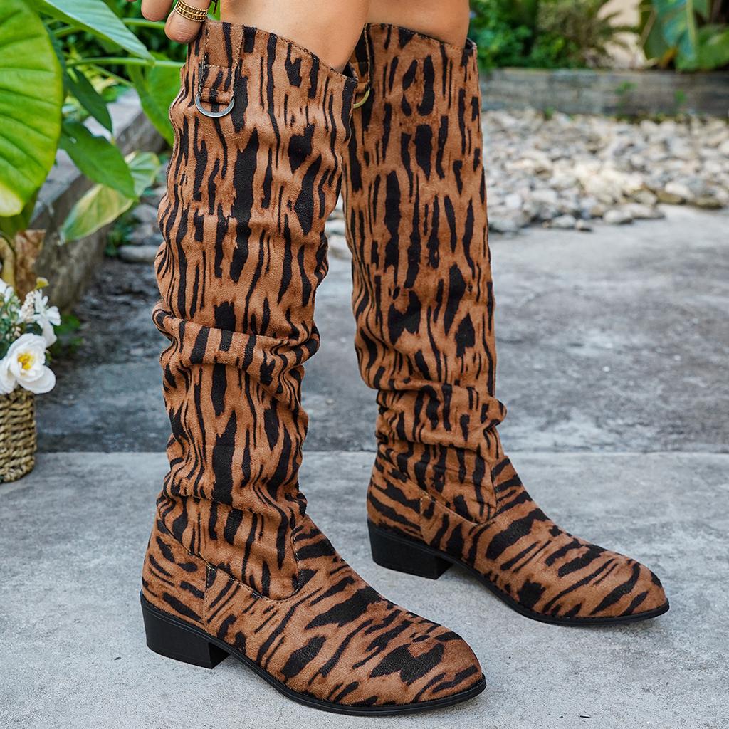Модные новые леопардовые замшевые ботильоны с острым носком, нескользящей износостойкой квадратной подошвой, высокие ботинки для осени