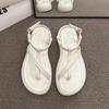 Модные женские сандалии Comemore на плоской подошве с перемычкой между пальцами, повседневные летние, новая мода, с перекрестными ремешками, на мягкой подошве, пляжная обувь, однотонные римские сандалии