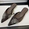 Модные хрустальные туфли-мюли на каблуке с острым носком, элегантные босоножки на каблуке, летние шлепанцы для вечеринок 2025, новая роскошная женская обувь