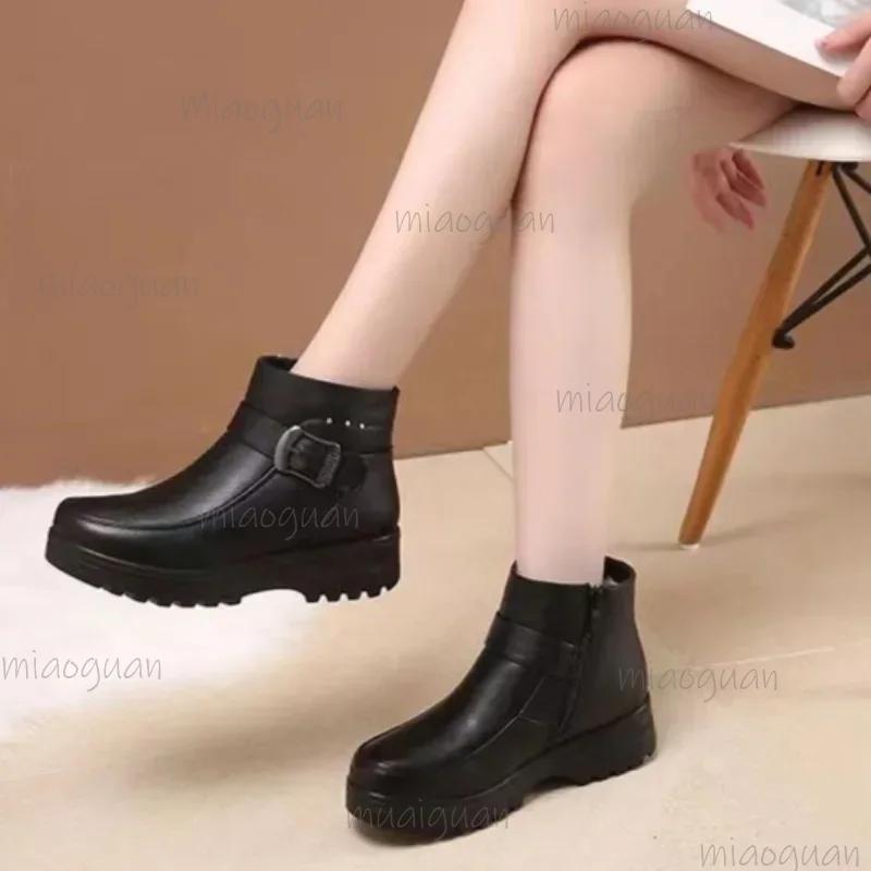 Модные женские ботильоны Модные высокие кожаные повседневные ботинки Зимние плюшевые теплые хлопковые туфли для женщин Нескользящие платформенные зимние ботинки