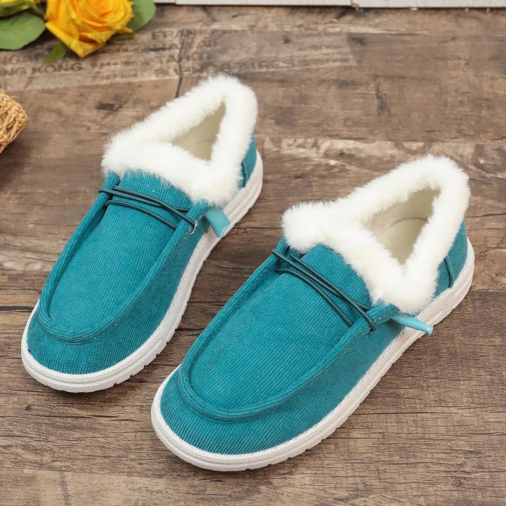 Fashion Aphixta Furry Warm Flats Shoes Women Cotton Fabric Blue Loafers Shoes Woman Flat With Student Footwear Size 43