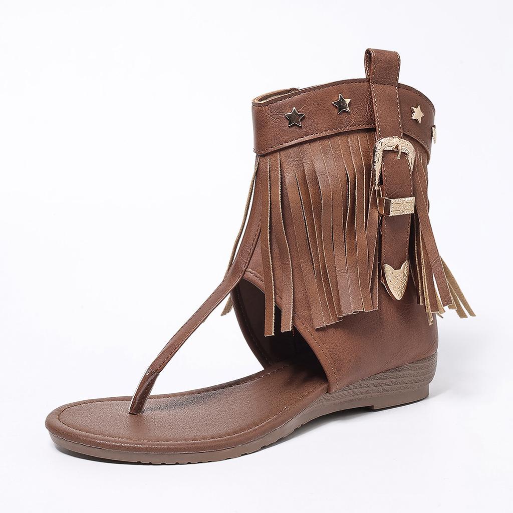 Мода 2025 Новые женские ретро-сандалии Гладиаторы Женские с перемычкой между пальцем Винтажные ботинки Повседневные с кисточками Римские Модные Летние женские туфли Женские