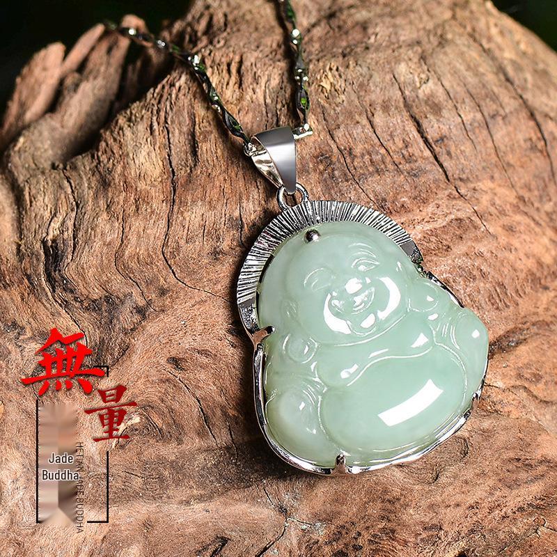 Подвеска-ожерелье из стерлингового серебра 925 пробы с жадеитом в виде Будды Майтреи с улыбающимся лицом