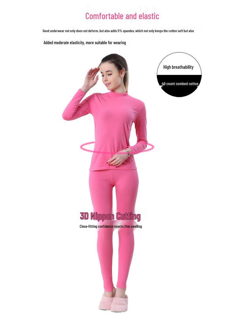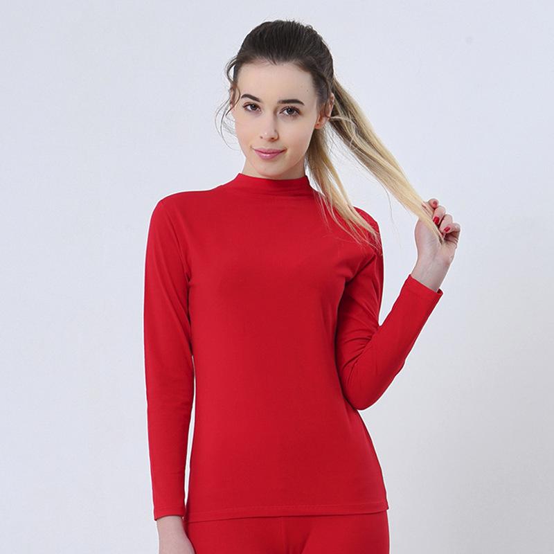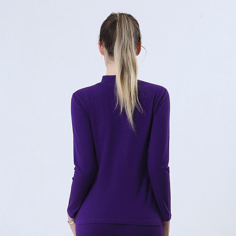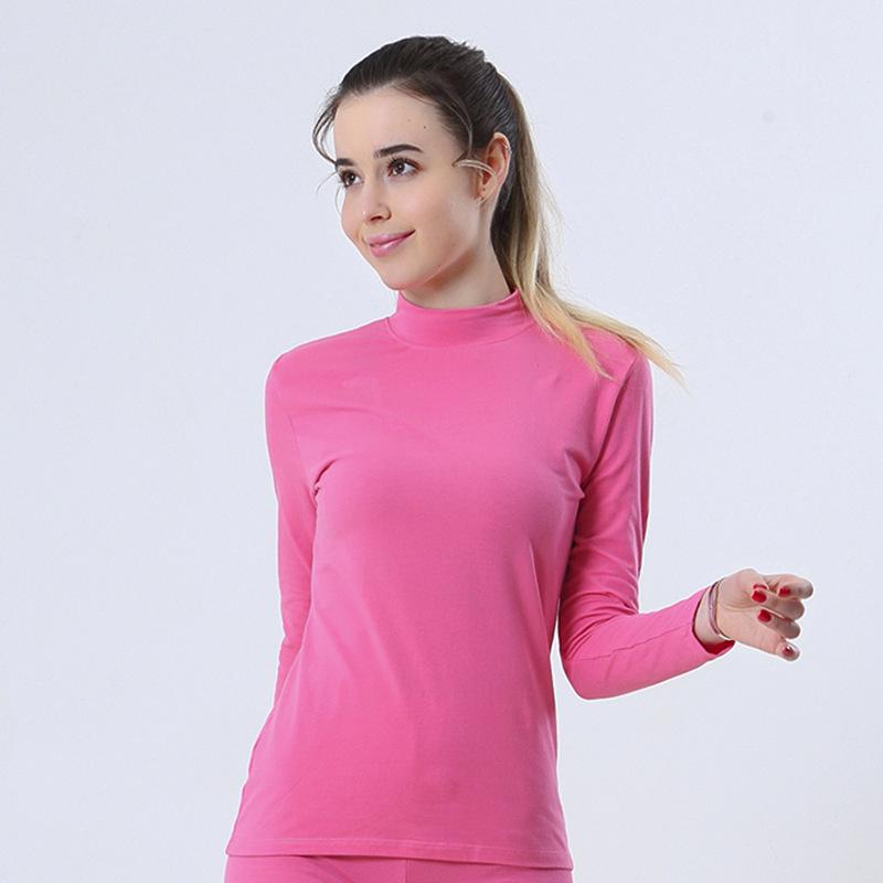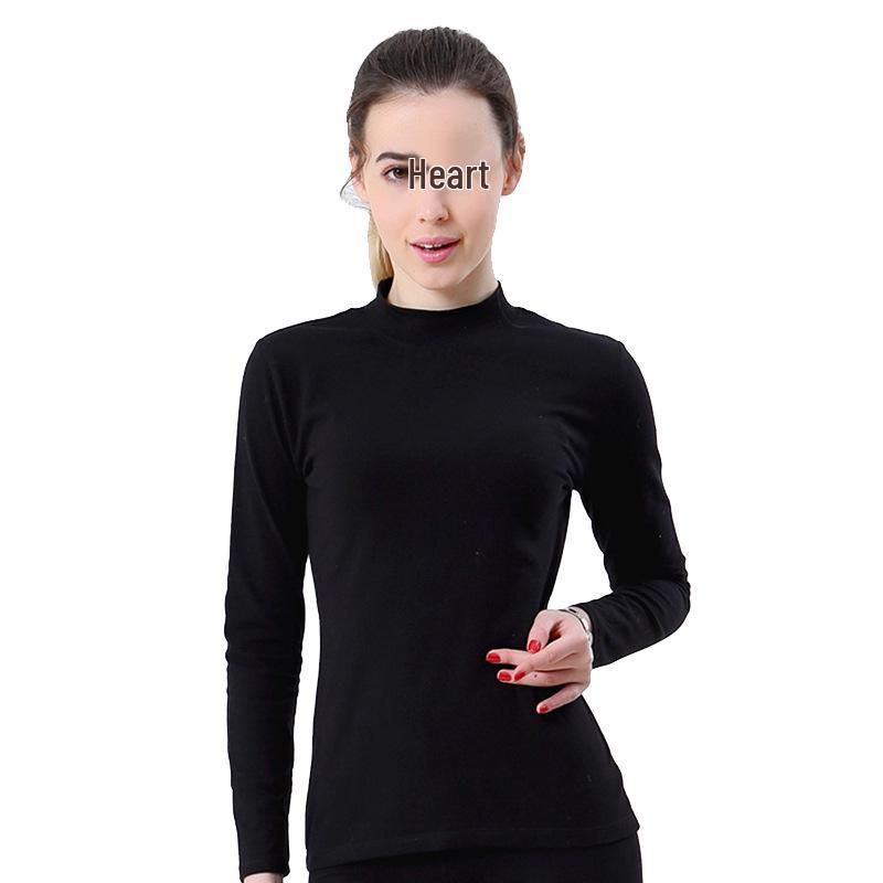 Женский теплый топ с полувысоким воротом из гребенного хлопка - Однотонный базовый слой