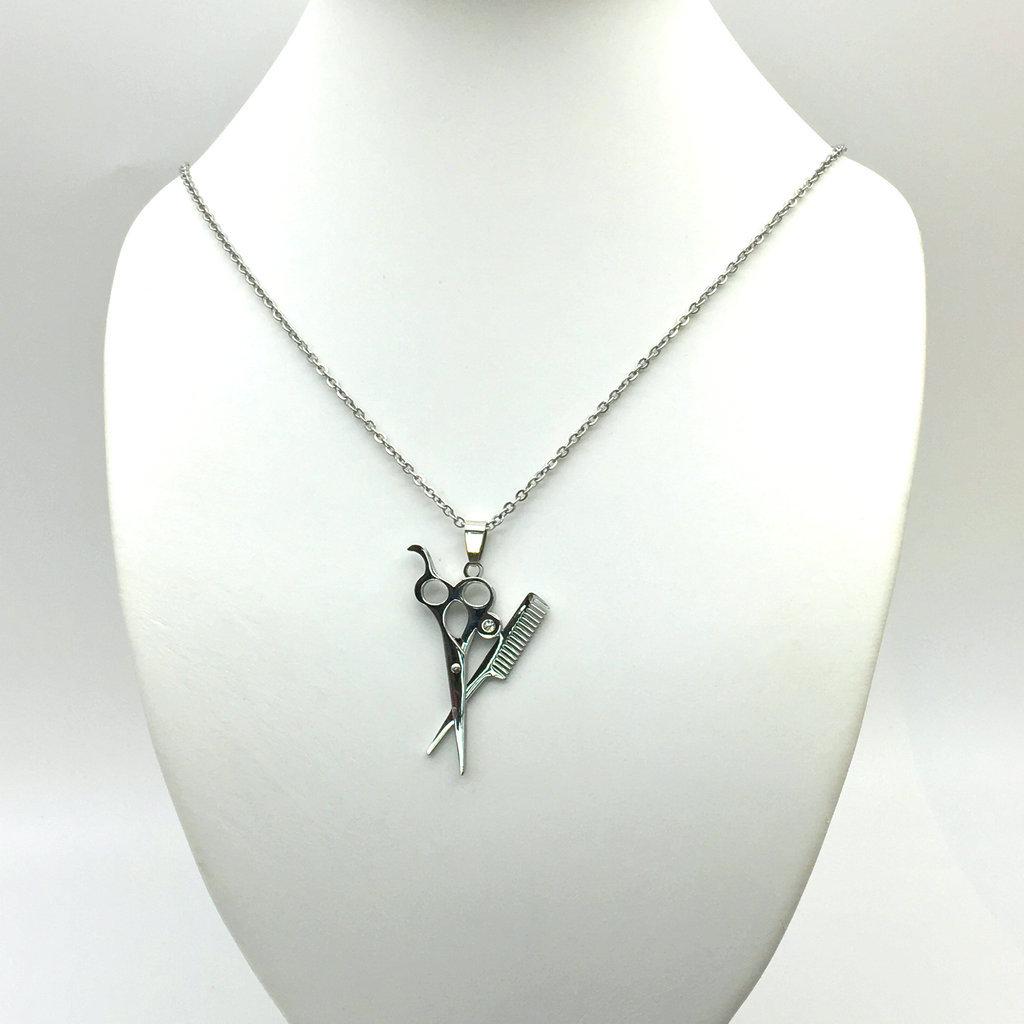 Ожерелье-подвеска из нержавеющей стали Парикмахерские ножницы расческа - DG-022