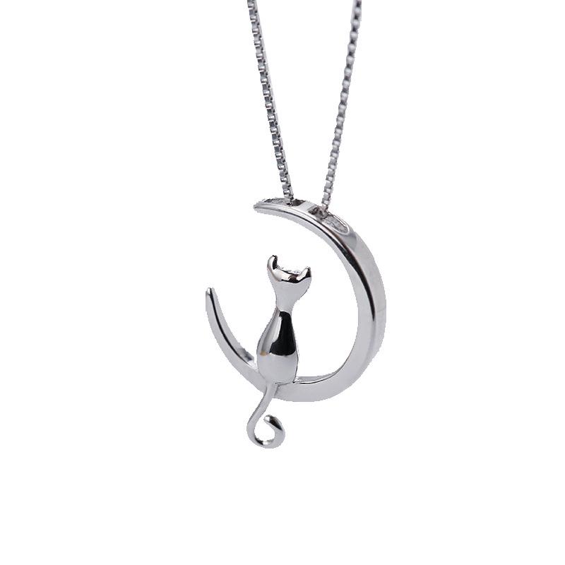 Корейское ожерелье с котенком-полумесяцем: Милая подвеска в виде кошки для женщин, простая и уникальная студенческая бижутерия