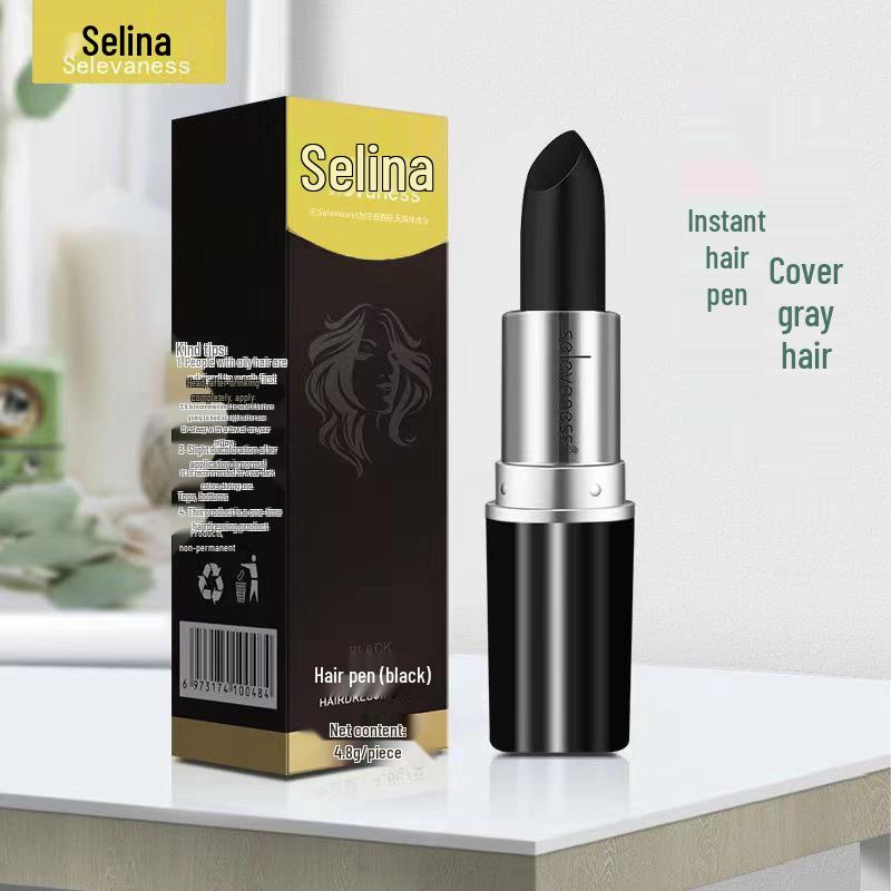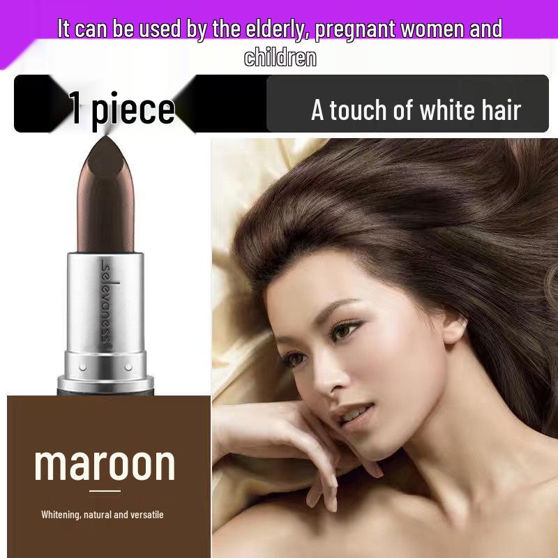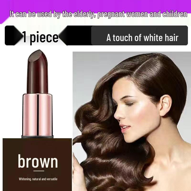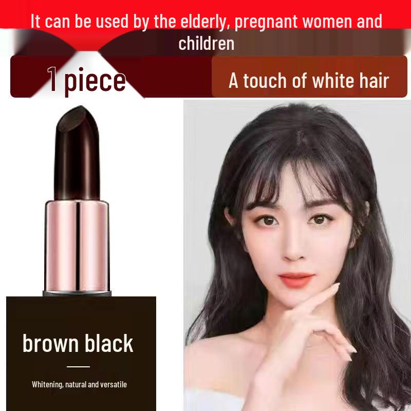 Временная краска для волос в виде стика-карандаша для маскировки седины - Каштановый коричневый/Черный, в стиле помады
