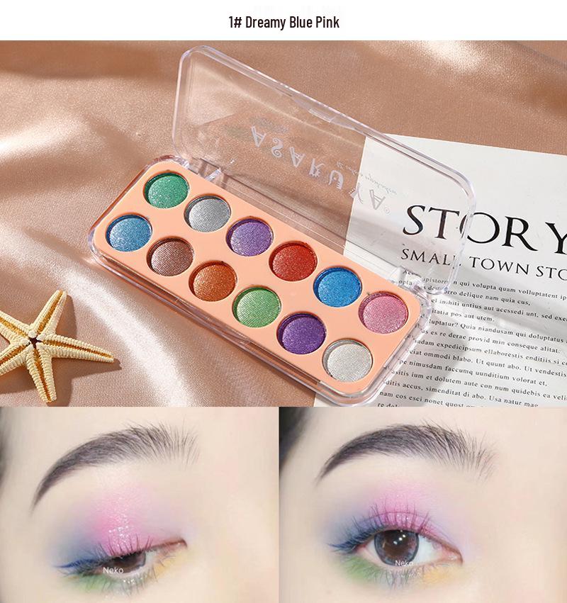 Палетка теней для век 12 цветов с глиттером и перламутром для студентов и сценического макияжа