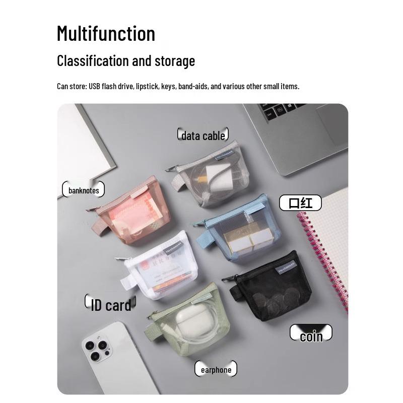 Компактный сетчатый чехол на молнии: Кошелек для монет, губная помада, держатель для карт и ключей для студентов