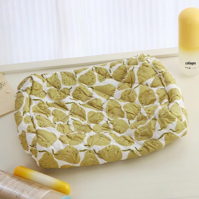 Yellow Duck Pear Large Capacity Makeup & Stationery Bag with Color Block Design