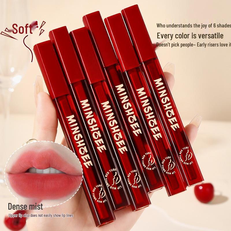 Mingxizhi Маленькая красная туба Бархатная матовая помада-глина для губ - Стойкий, Отбеливающий блеск для губ для осени/зимы