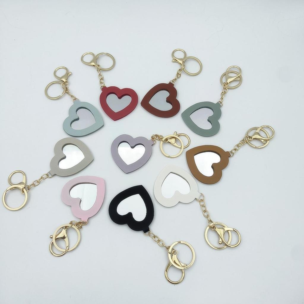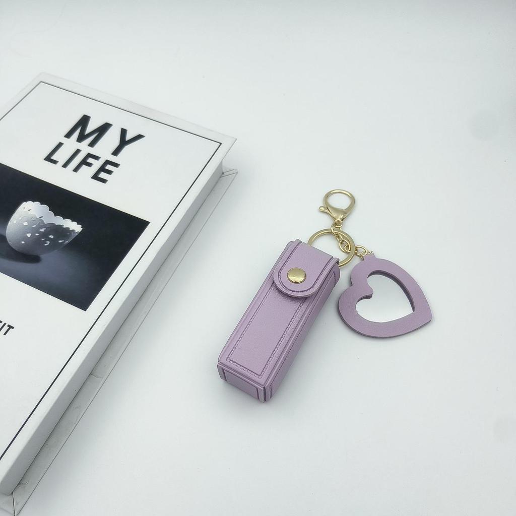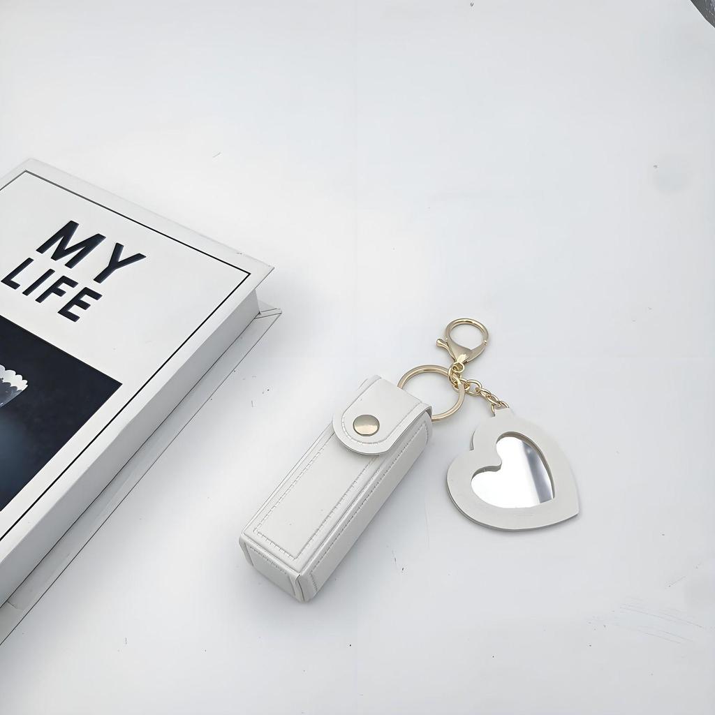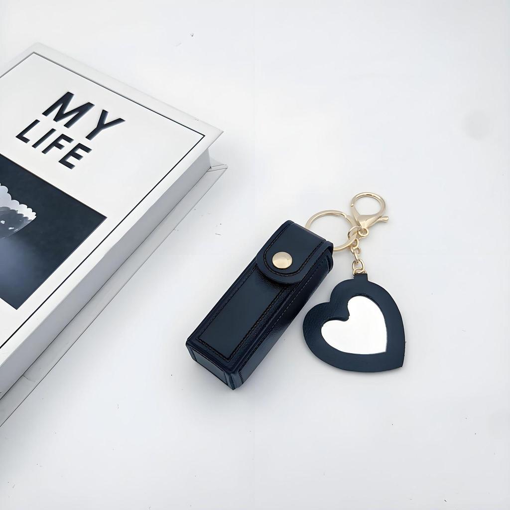 Портативный футляр для помады-зеркала в форме сердца с защитной кожей и милым брелоком-подвеской