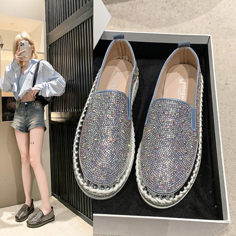 Весенне-осенние новые туфли-маффины на платформе, одинарные, большого размера, с круглым носком, цветными стразами, на плоской подошве, ленивые туфли женские