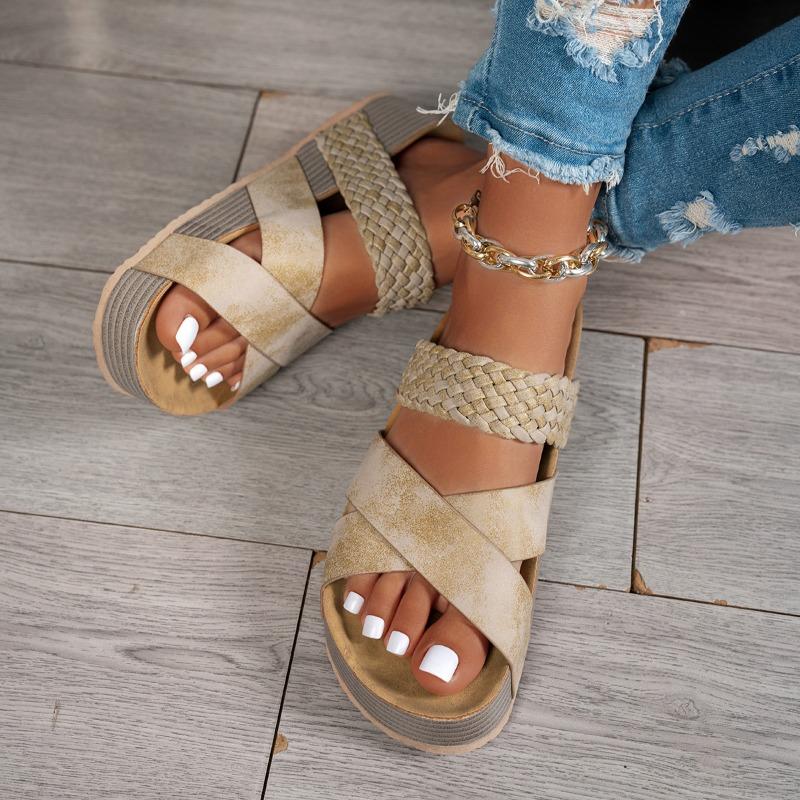 Женские летние шлепанцы на платформе большого размера, новая модная повседневная ленивая обувь, сандалии крест-накрест, шлепанцы с перемычкой