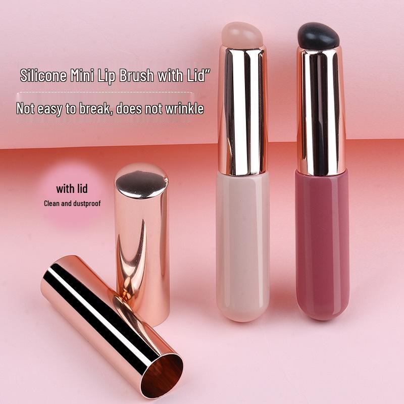 Portable Silicone Lip and Concealer Brush with Lid - Professional Blending Round Head Makeup Tool