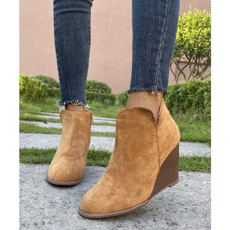Размер 44 женские короткие ботинки на танкетке, новые осенне-зимние ботинки на плоской подошве с круглым носком и боковой молнией, сапоги на высоком каблуке и ботильоны