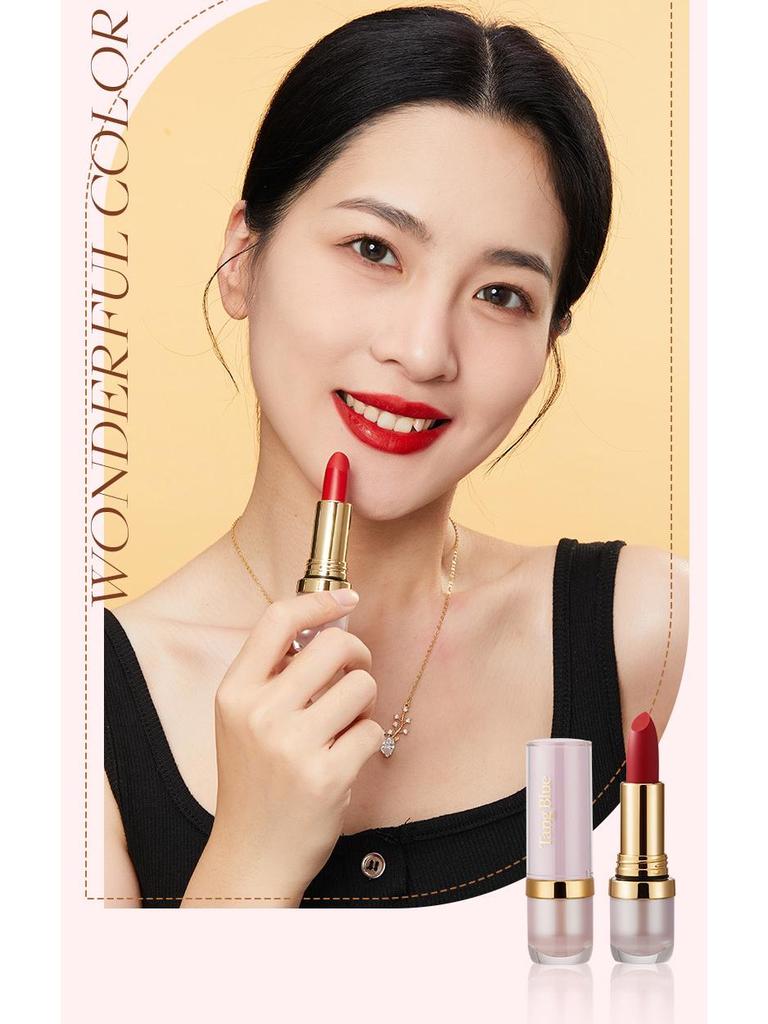Матовая помада Tang Blue: Мягкий фокус, Нелипкая, Шелковистая, Легкая, Не сушащая формула