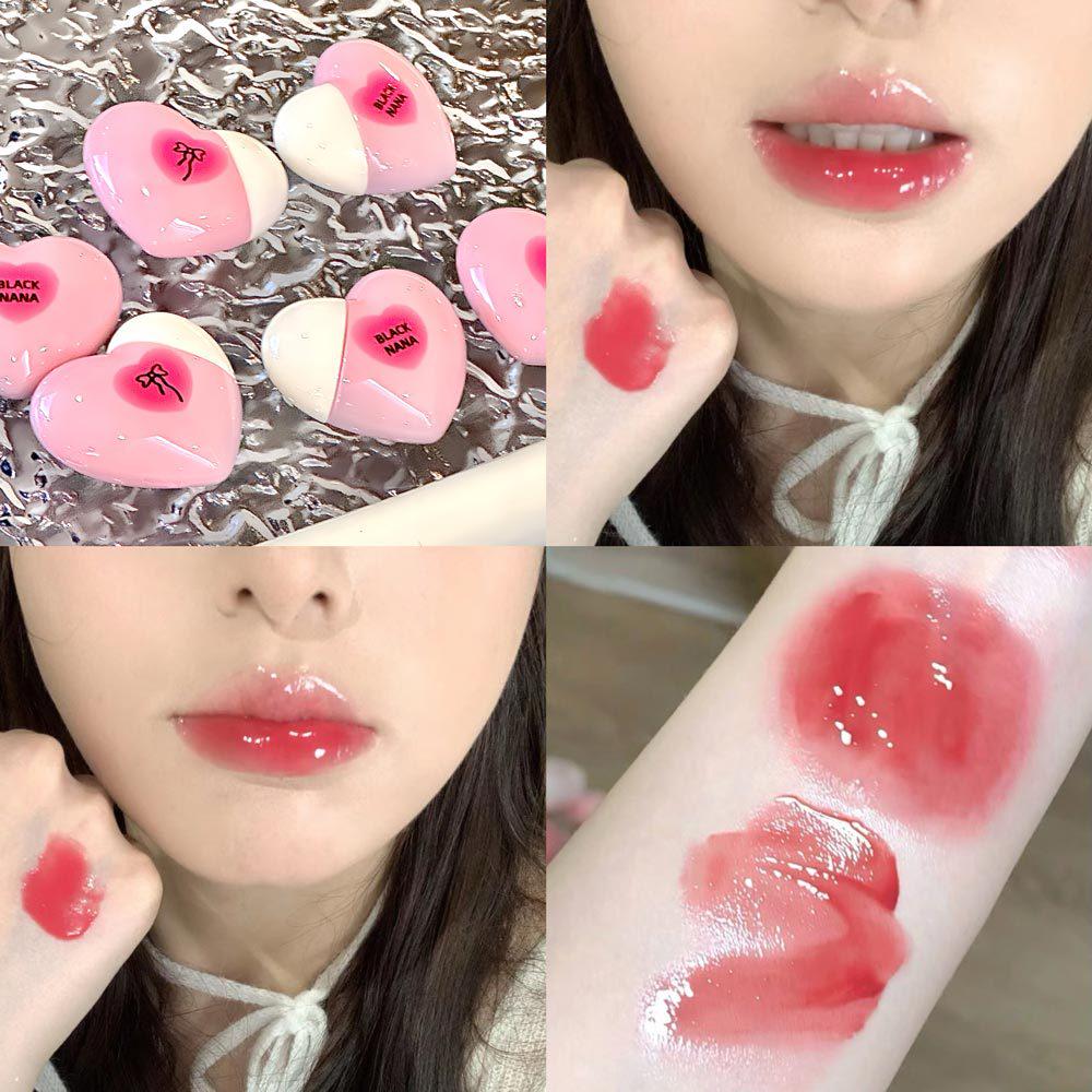 BLACKNANA Зеркальный блеск для губ Heartbeat: Стойкий нюдовый тинт для губ в корейском стиле