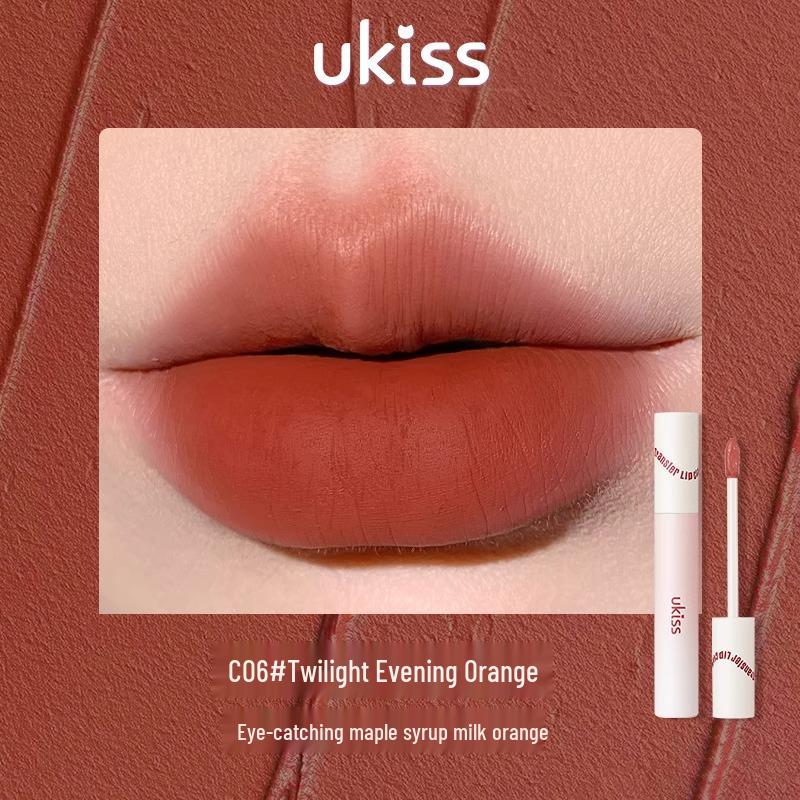 Ukiss Velvet Matte Lip Gloss: Non-Stick, Nude Color Enhancing Lipstick for Women's Natural Beauty.