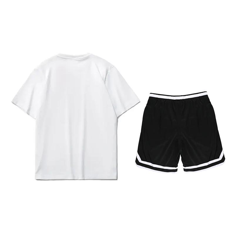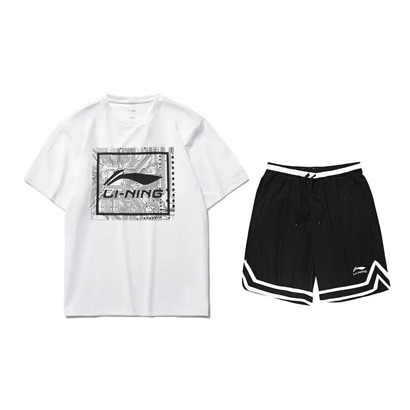 Li-Ning Логотип с надписью, круглый вырез, свободный крой, короткий рукав, средняя посадка, шорты на завязках, повседневный спортивный костюм, унисекс, AHSUA15-1+YAPV001-1
