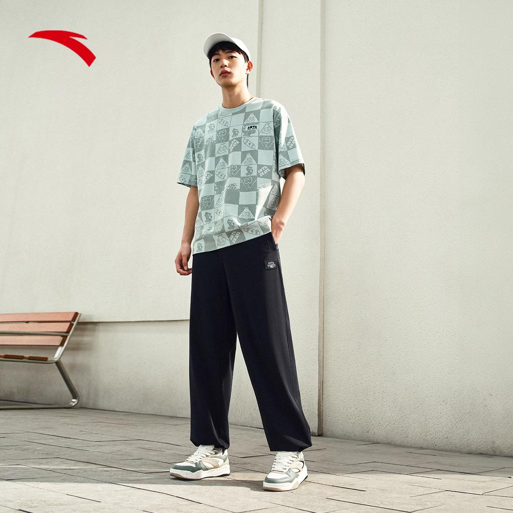 Anta Повседневные Простые Однотонные Прямого Свободного Кроя Вязаные Спортивные Брюки Мужские Брюки Базовый-Черный 152528310S-2