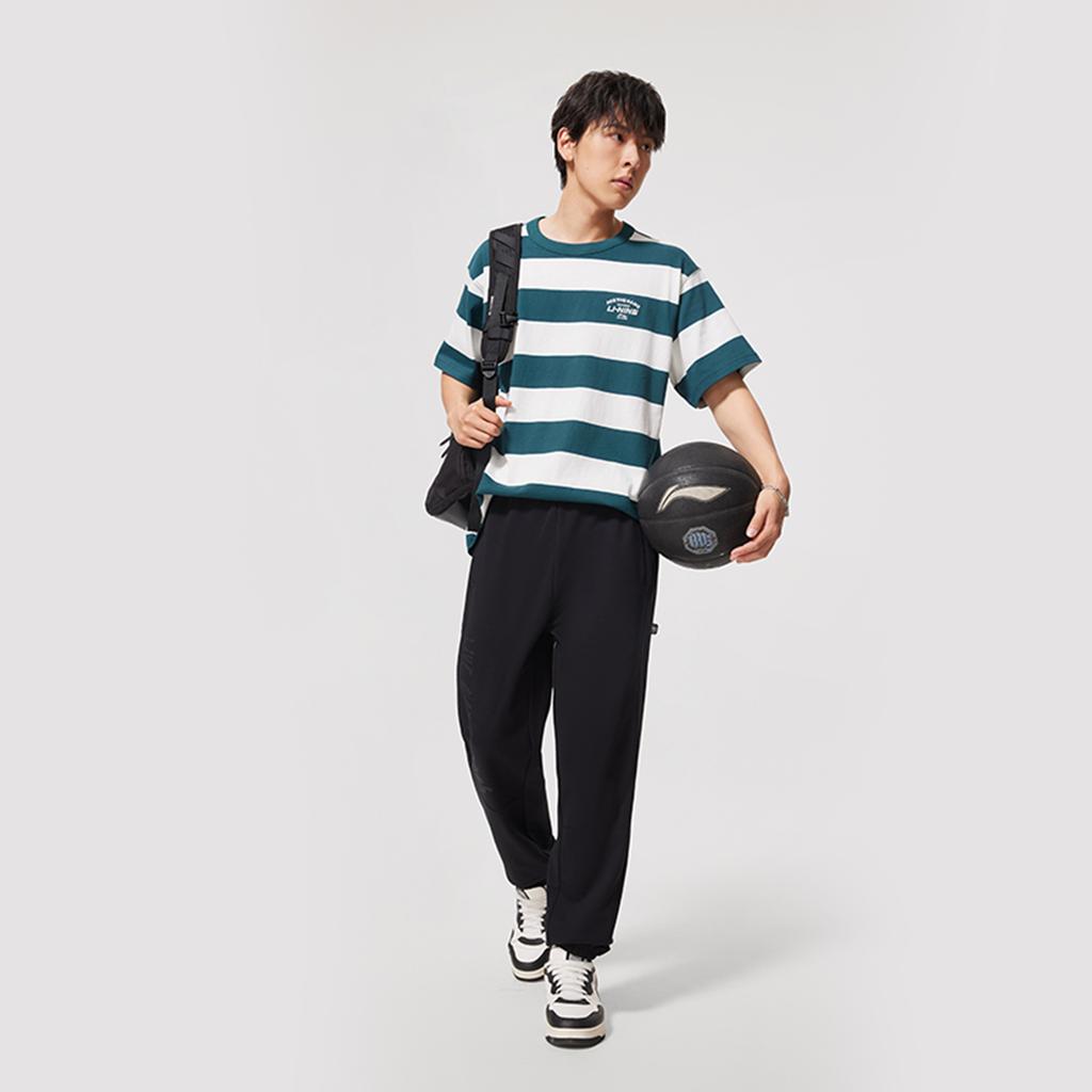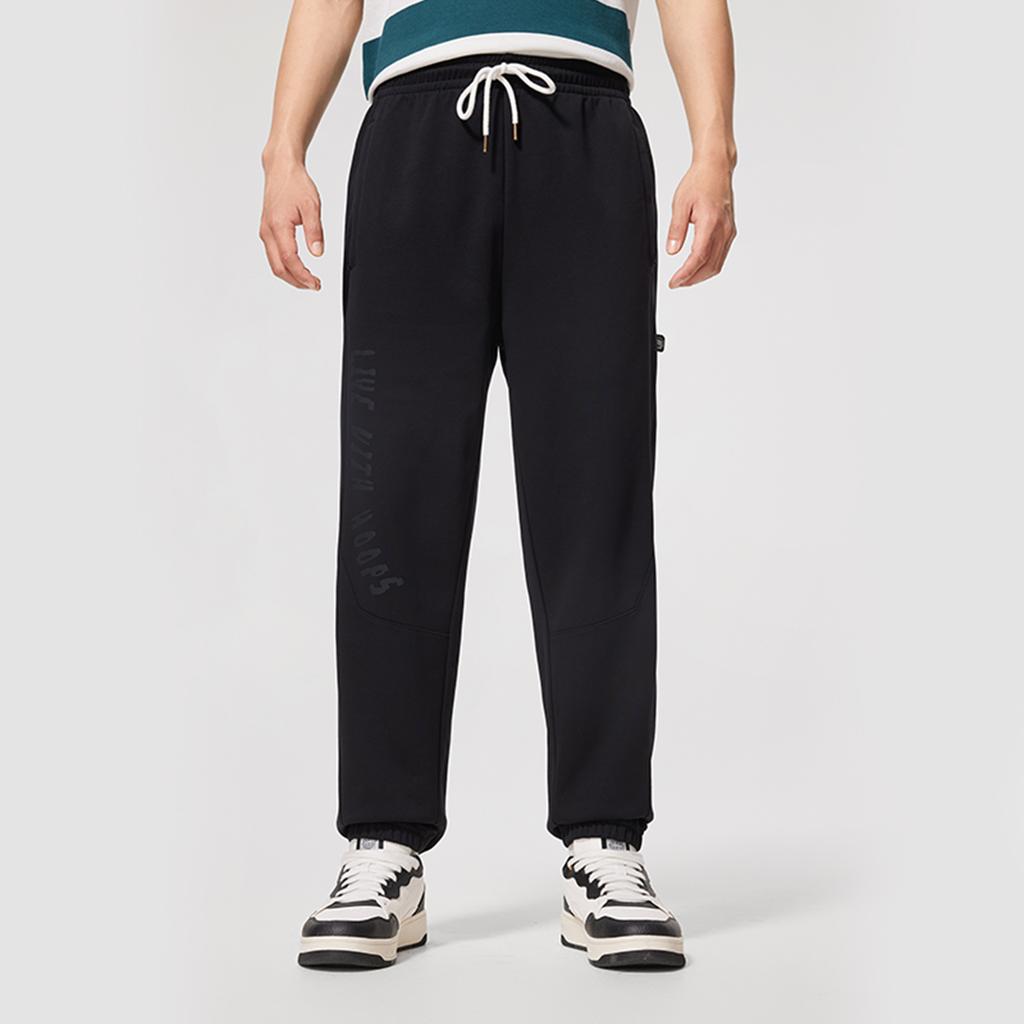 Li-Ning Серия Баскетбол Письмо Средняя посадка Кулиска Дышащие Универсальные Вязаные Спортивные Штаны Мужские Штаны Черный AKLV085-3