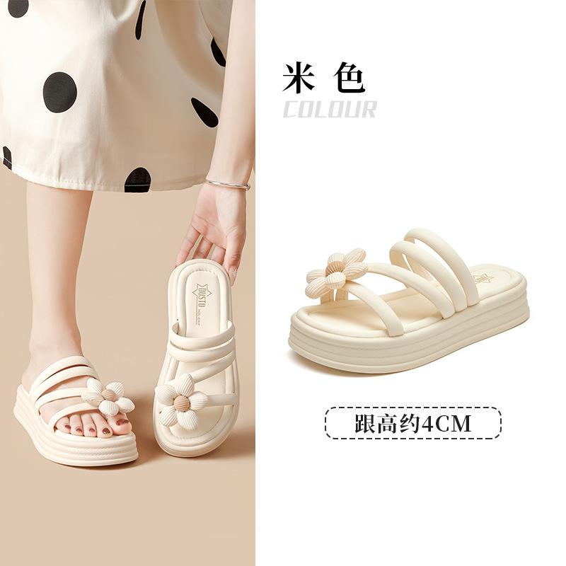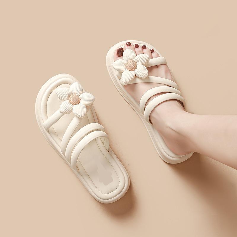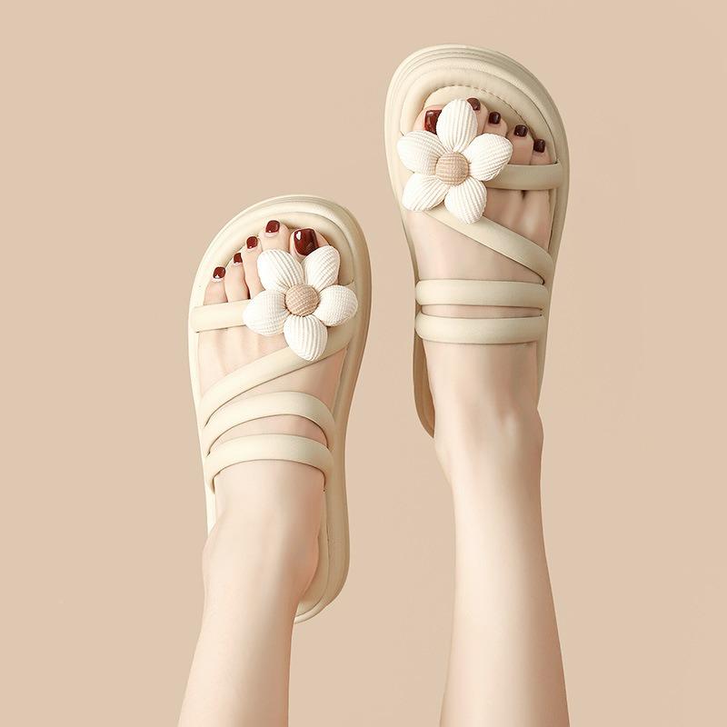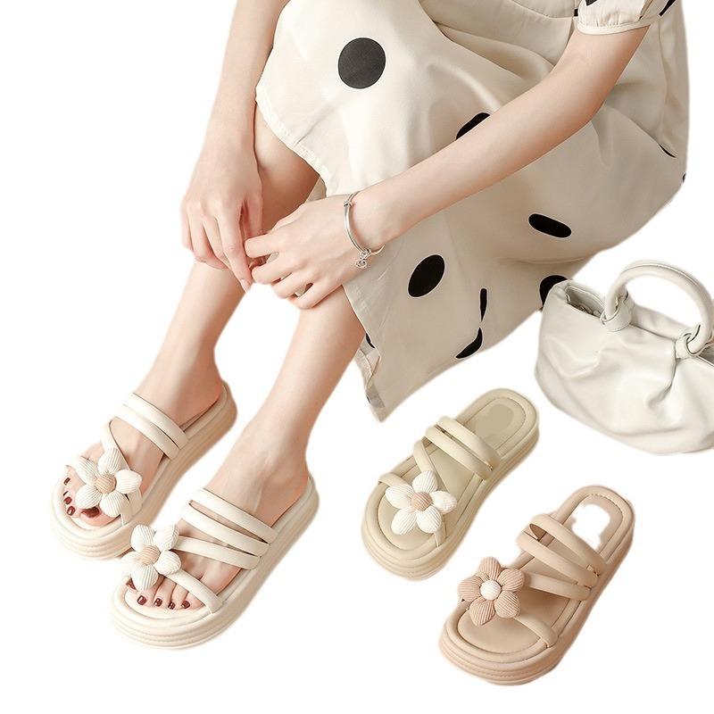 Женские летние сандалии для улицы, новые универсальные, на толстой подошве, нескользящие, шлепанцы с цветком