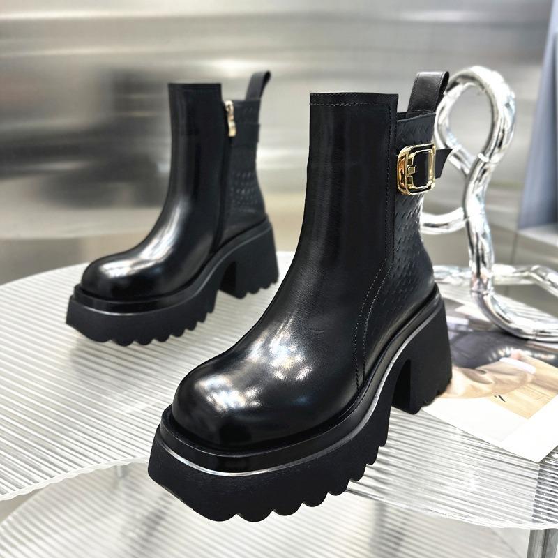 Женские полусапожки на высоком каблуке, ботинки на толстой подошве, новые осенне-зимние бархатные ботинки на толстом каблуке, ботинки Мартина с небольшой платформой