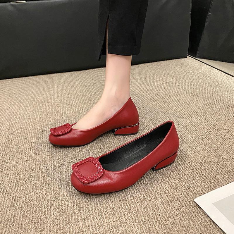Новые туфли-лодочки из мягкой кожи на среднем каблуке, с круглым носком, универсальные, на грубом каблуке, из мягкой кожи, универсальные, для работы.