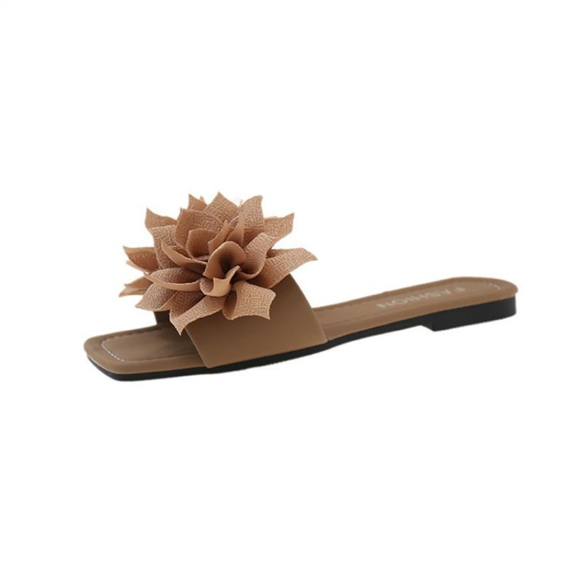 Повседневные шлепанцы на плоской подошве с квадратным носком, женские, с цветочным декором, для ленивых, на один педаль, с открытым носком, шлепанцы на один ремешок, пляжные, повседневные женские сандалии