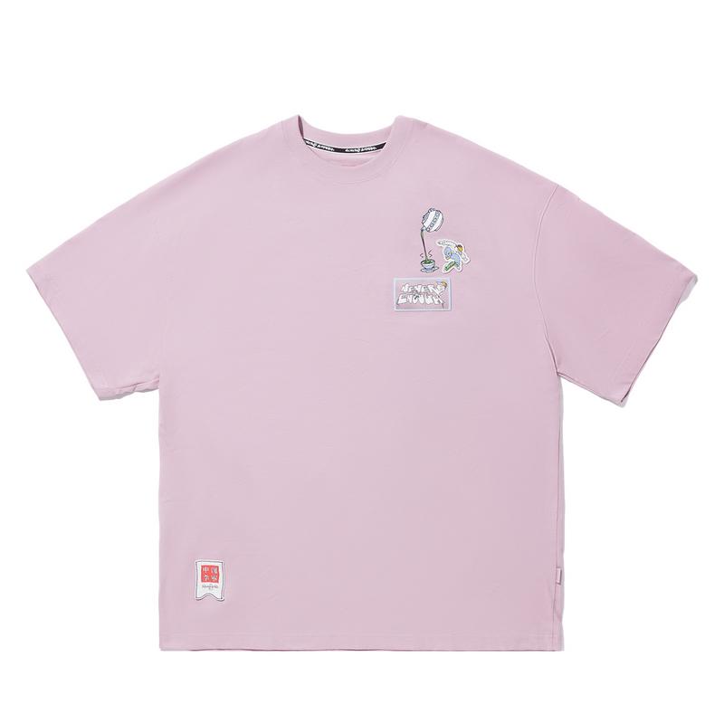 Li Ning X Коллаборация с художником Генри Джонсом Свободный крой Спортивный Минималистичный Универсальный Футболка с круглым вырезом и коротким рукавом с принтом логотипа бренда с буквами AHSV419-4