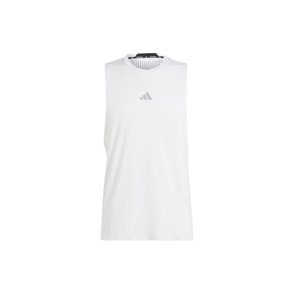 Adidas Однотонная майка без рукавов для фитнеса с круглым вырезом и логотипом для мужчин, белая IS3709