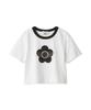 This versatile T-shirt features a basic color and design that can be worn with anything! The embroidered logo and original plate on the front add a subtle, sophisticated touch. Its simple yet striking design is a testament to its presence. The comfortable, compact silhouette accentuates feminine lines for a clean, sleek look. This versatile piece complements a wide range of styles, from denim to skirts and wide-leg pants, and also pairs beautifully with a camisole. *Colors may appear differently depending on the lighting conditions during photography.