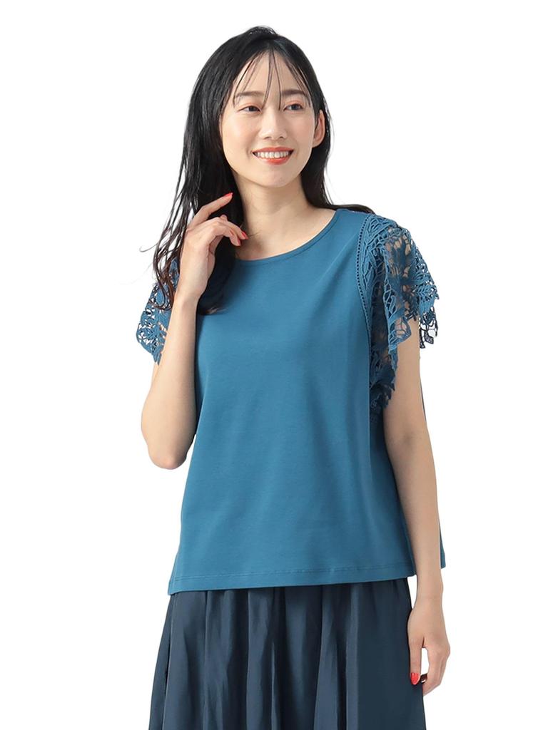 Beams Heart Tee Lace Sleeve Free Size Women's S/S Pullover, Blue,