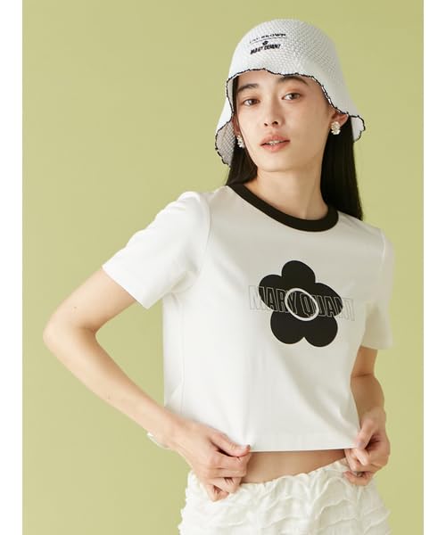 Lily Brown Mary Quant Glitter Logo Ringer White T-Shirt (LWCT254006) Women's