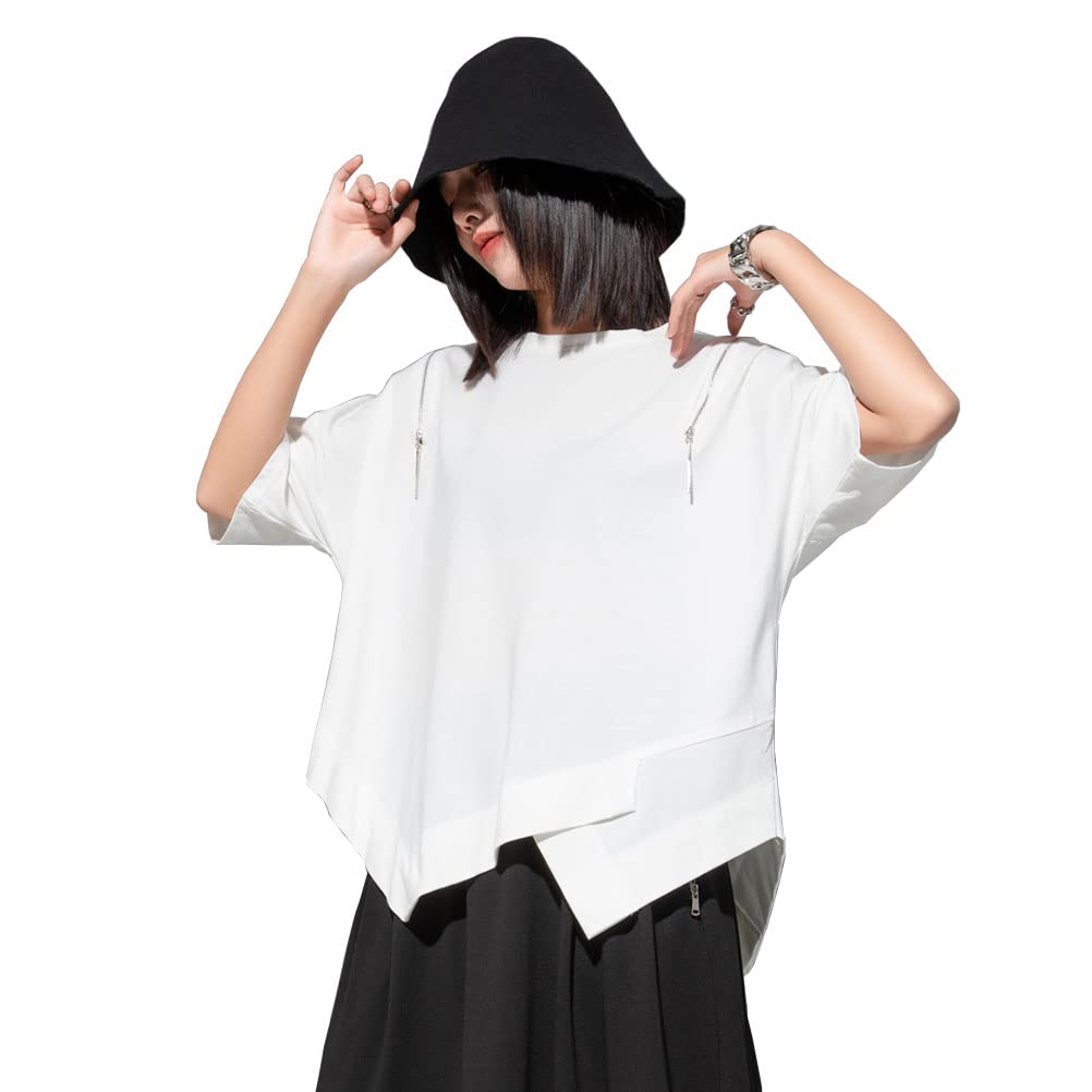 Morino Short Sleeve Loose Fit Solid Street Summer Size Women's T-Shirt, Color, Asymmetrical, Zippered, Off-the-Shoulder, Casual, Fashionable, Unique,
