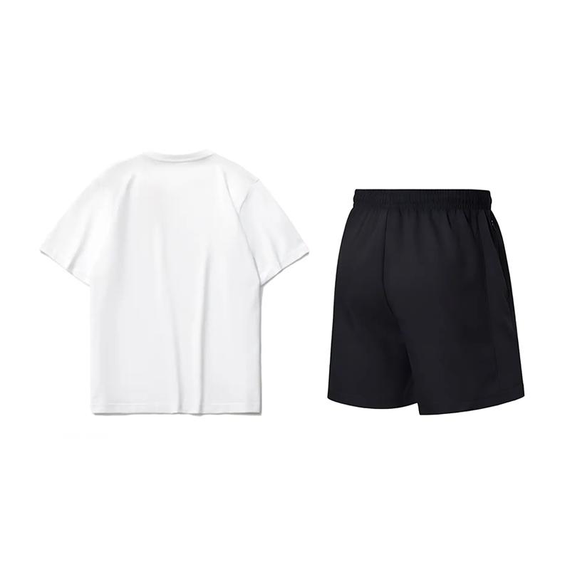 Li-Ning Мультяшный принт логотипа Футболка с круглым вырезом и короткими рукавами Модная трендовая универсальная футболка Шорты Повседневный спортивный костюм Костюм унисекс AHSUA21-1+AKSV843-1