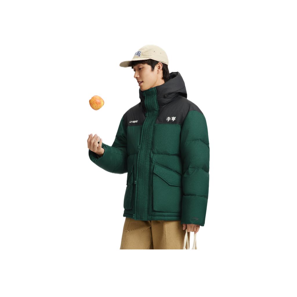 Li Ning Цветной блок Молния Буквы Капюшон Универсальная Пуховая Куртка Унисекс Верхняя одежда AYMV435-4