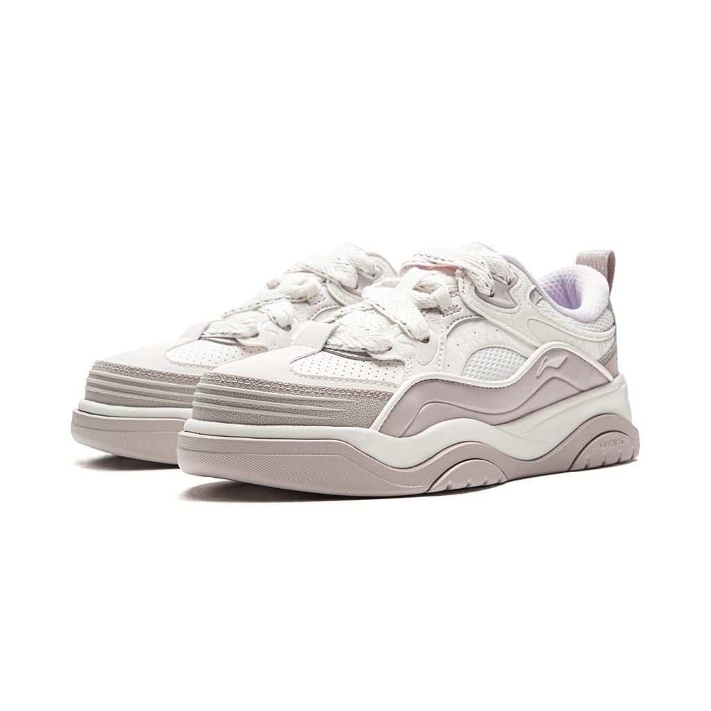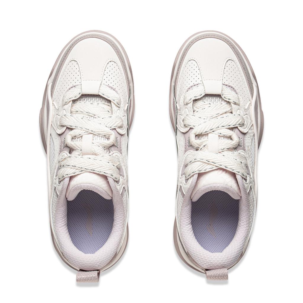Li Ning Journey 2.0 Амортизирующая обувь Толстая подошва Увеличение роста Амортизация Универсальные кроссовки с низким верхом Женские кроссовки Бело-фиолетовый AGCV328-2