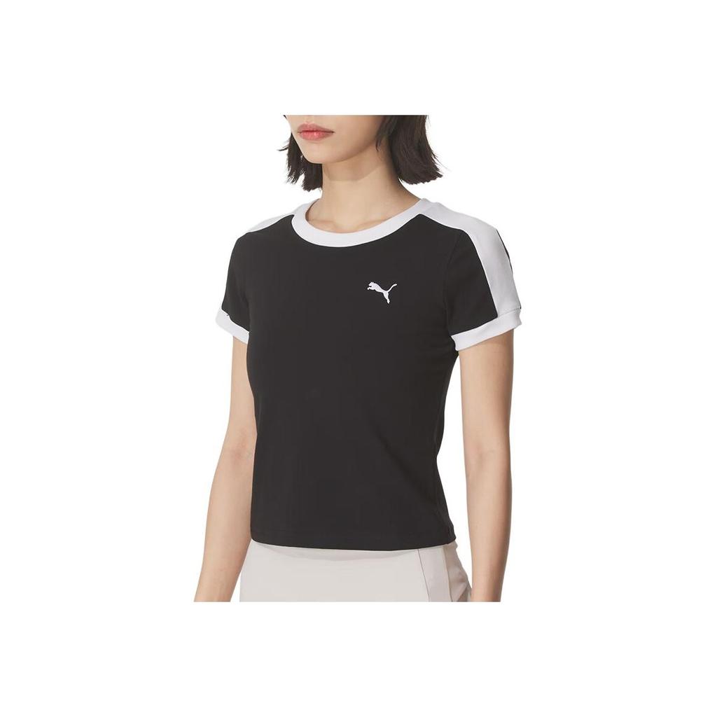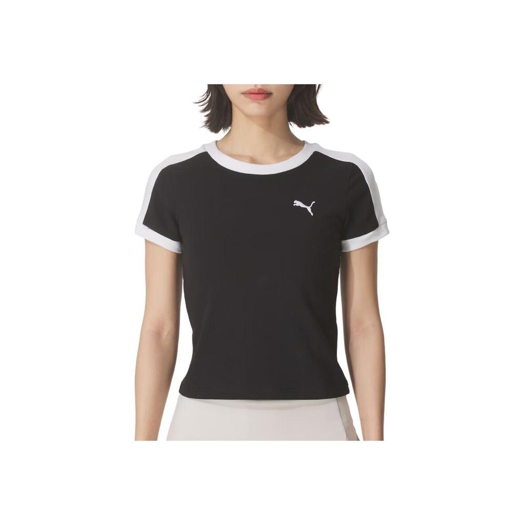 Puma T7 Дышащая модная универсальная футболка с коротким рукавом и круглым вырезом Женские топы 635876-01