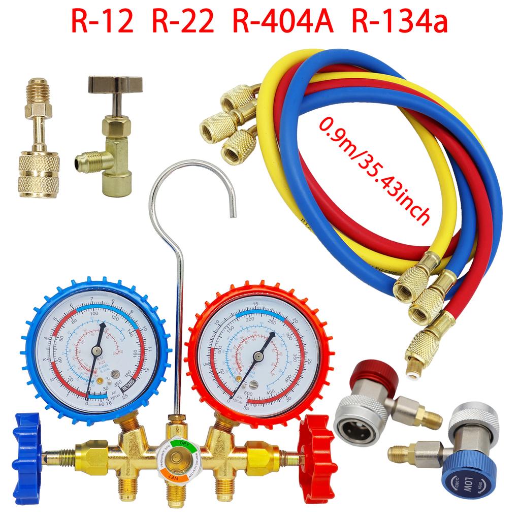 Манометр для кондиционирования воздуха R134a со шлангом и крюком, 3-ходовой диагностический манометр для коллектора кондиционера, комплект фреона для R12 R22 R404A R134a