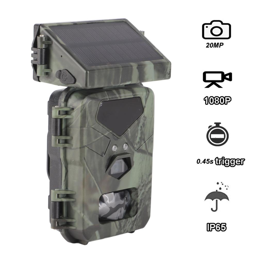 Solar Hunting Camera Solar Trail Camera Loop Recording IP65 Waterproof ABS 60 Degree Detection Angle Night Vision for Outdoor